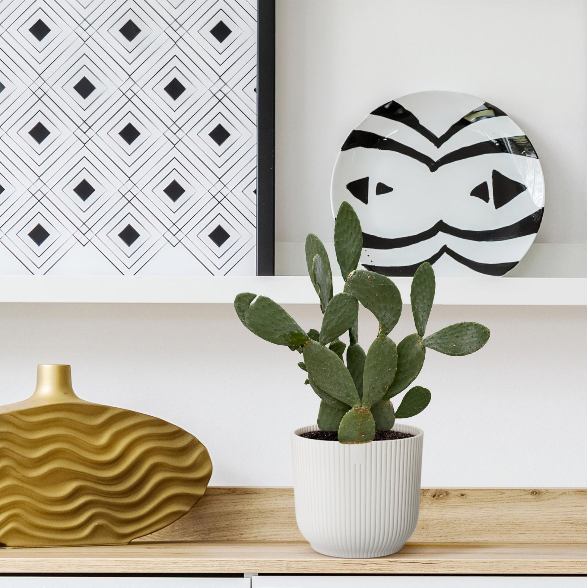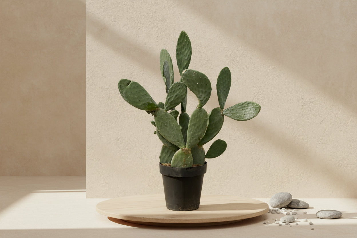 - Aussehen der Pflanze: Die Opuntia Ficus Indica besticht durch ihre großen, flachen Blätter in leuchtendem Grün. Dieser Kaktus hat ein robustes Aussehen und kann im Sommer wunderschöne gelbe Blüten hervorbringen, die Bienen anziehen.