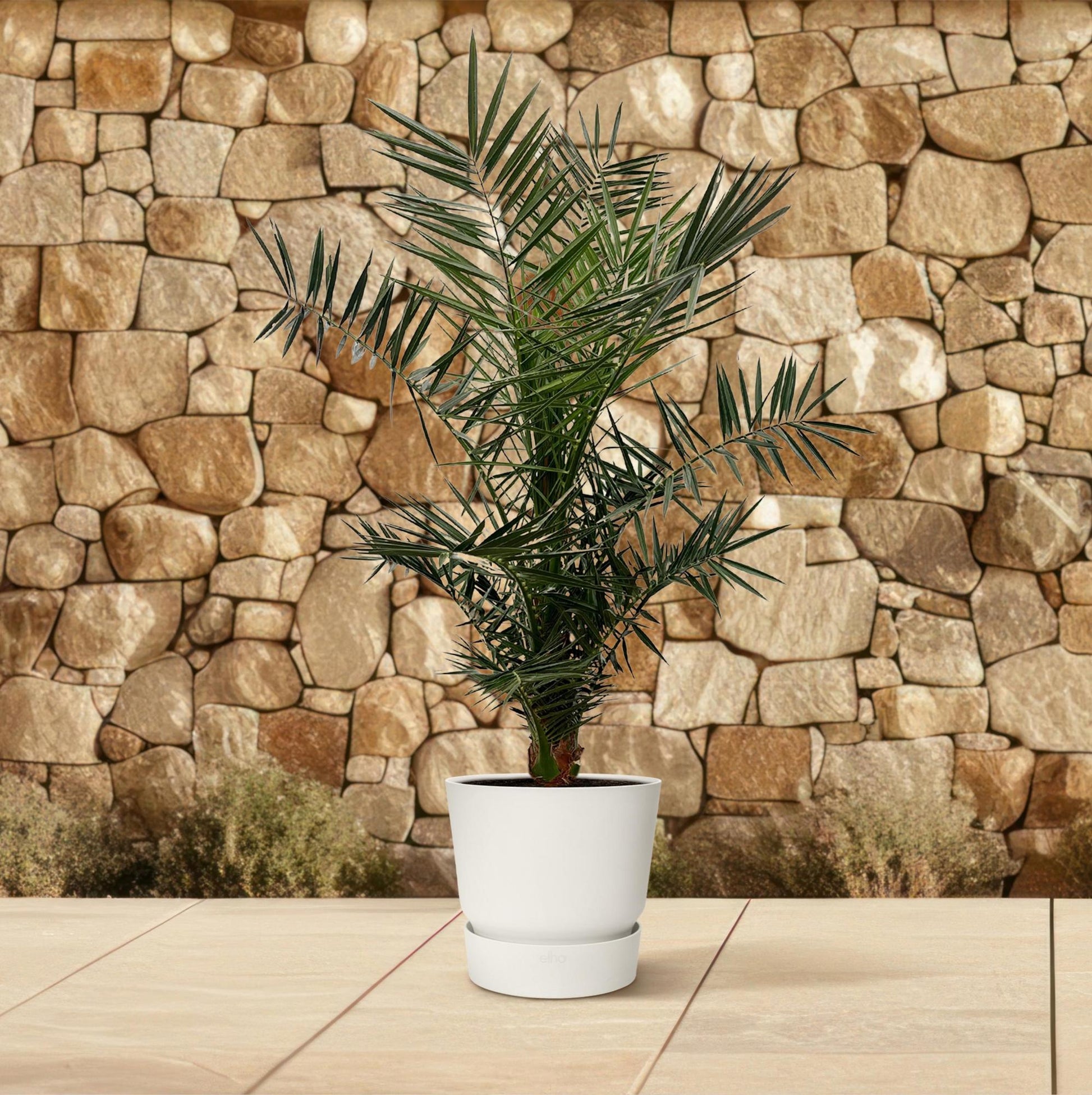 - Standplaats: Deze palm houdt van veel zonlicht en kan zowel binnen als buiten staan. Plaats bij voorkeur op een zonnige plek, maar hij verdraagt ook lichte schaduw.